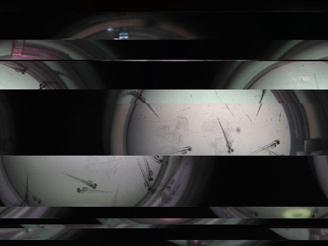 Las imágenes son resultantes de una serie de experimentos de bioensayos biológicos, en los que se expusieron embriones de pez cebra a diferentes concentraciones de petróleo, con el objetivo de analizar las malformaciones causadas. A cada imagen se le agregó (dentro del código fuente) una serie de textos relacionados con la composición química/datos del petróleo, cambiando las veces en que se repitió (poco, mucho), como una réplica de lo que se realizó en los experimentos, en los que se exponían los organismos a poco o mucho petróleo. También se incluyeron fragmentos de texto de los artículos científicos ya publicados, derivados de los experimentos, con los resultados y las conclusiones finales de los mismos, donde se establece el impacto de los contaminantes en el desarrollo de los embriones.